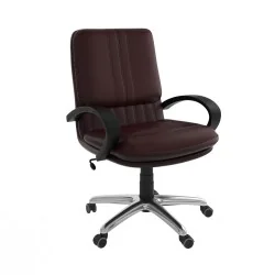 Assise et dossier rembourrés en mousse souple avec couche de dacron. Revêtement en simili cuir ou tissu. Accoudoirs fixe en polypropylène couleur noir. Mécanisme tournant, roulant, réglable en hauteur et en inclinaison. Structure étoilée à 05 branches en métal couleur chromé avec 05 roulettes tournantes roulantes à double galets même matière.