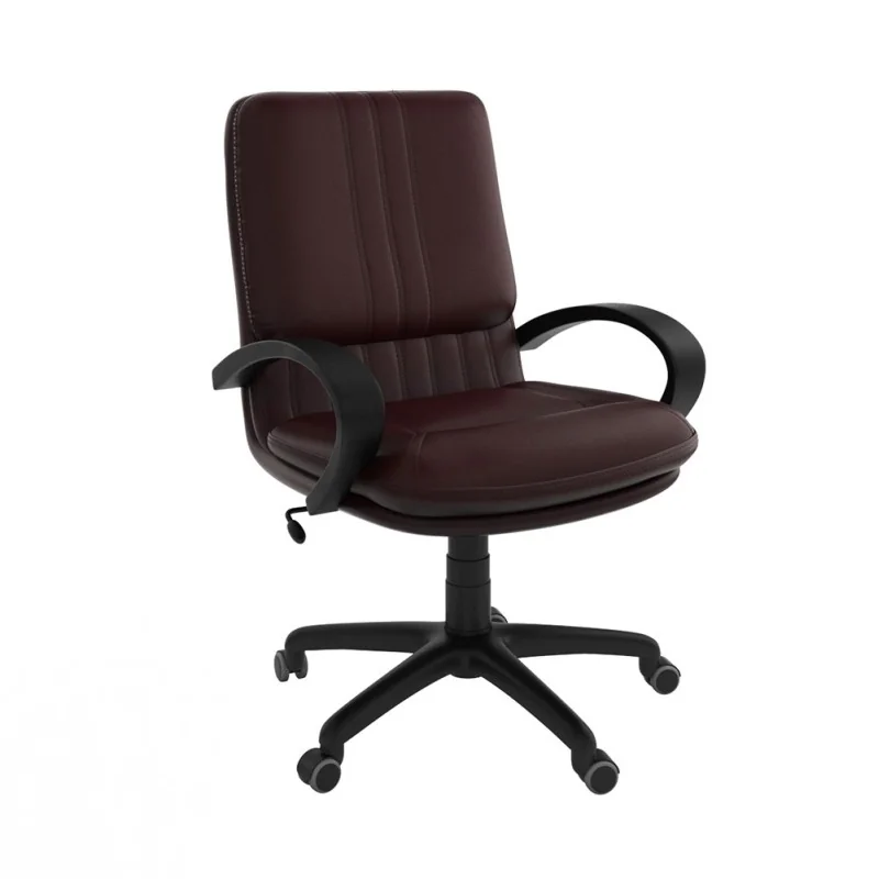 Assise et dossier rembourrés en mousse souple avec couche de dacron. Revêtement en simili cuir ou tissu. Accoudoirs fixe en polypropylène couleur noir. Mécanisme tournant, roulant, réglable en hauteur et en inclinaison. Structure étoilée à 05 branches en polypropylène couleur noir avec 05 roulettes tournantes roulantes à double galets même matière.