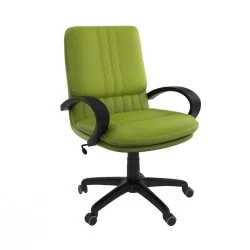 Assise et dossier rembourrés en mousse souple avec couche de dacron. Revêtement en simili cuir ou tissu. Accoudoirs fixe en polypropylène couleur noir. Mécanisme tournant, roulant, réglable en hauteur et en inclinaison. Structure étoilée à 05 branches en polypropylène couleur noir avec 05 roulettes tournantes roulantes à double galets même matière.