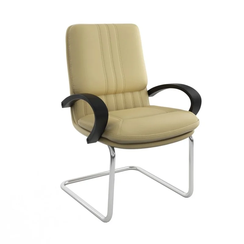 Assise et dossier rembourrés en mousse souple avec couche de dacron. Accoudoirs fixe en Polypropylène couleur noir. Revêtement en simili cuir. Structure métallique (luge) chromé avec patins danti-dérapage.