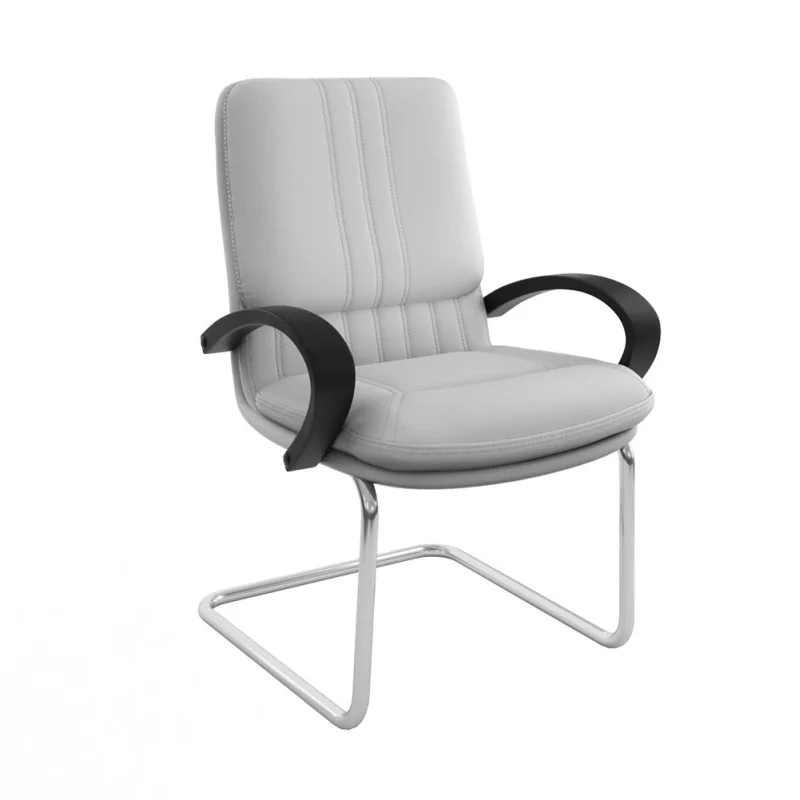 Assise et dossier rembourrés en mousse souple avec couche de dacron. Accoudoirs fixe en Polypropylène couleur noir. Revêtement en simili cuir. Structure métallique (luge) chromé avec patins danti-dérapage.