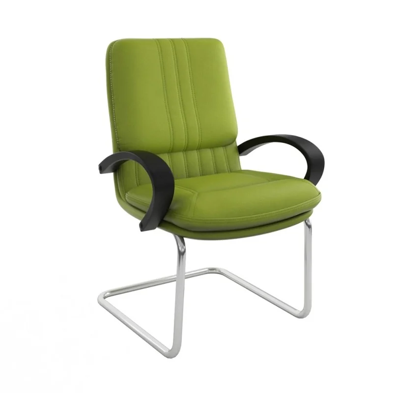 Assise et dossier rembourrés en mousse souple avec couche de dacron. Accoudoirs fixe en Polypropylène couleur noir. Revêtement en simili cuir. Structure métallique (luge) chromé avec patins danti-dérapage.