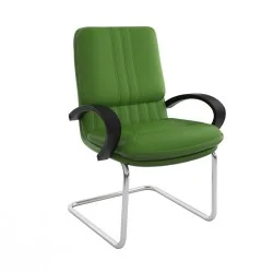 Assise et dossier rembourrés en mousse souple avec couche de dacron. Accoudoirs fixe en Polypropylène couleur noir. Revêtement en simili cuir. Structure métallique (luge) chromé avec patins danti-dérapage.