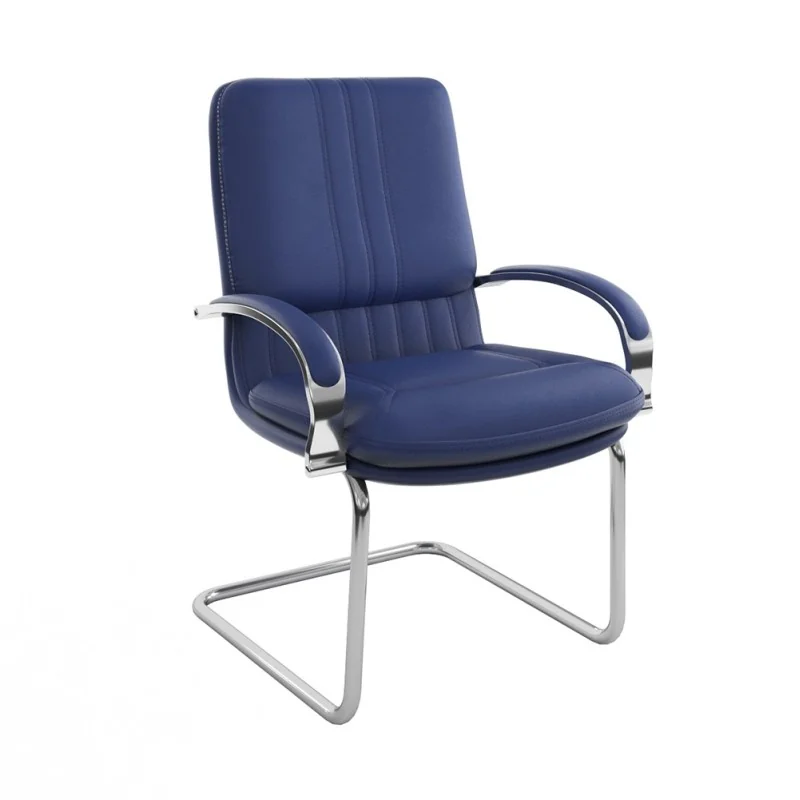Assise et dossier rembourrés en mousse souple avec couche de dacron. Accoudoirs fixe en métal chromé avec une partie rembourré, tapissé. Revêtement en simili cuir. Structure métallique (luge) chromé avec patins danti-dérapage.