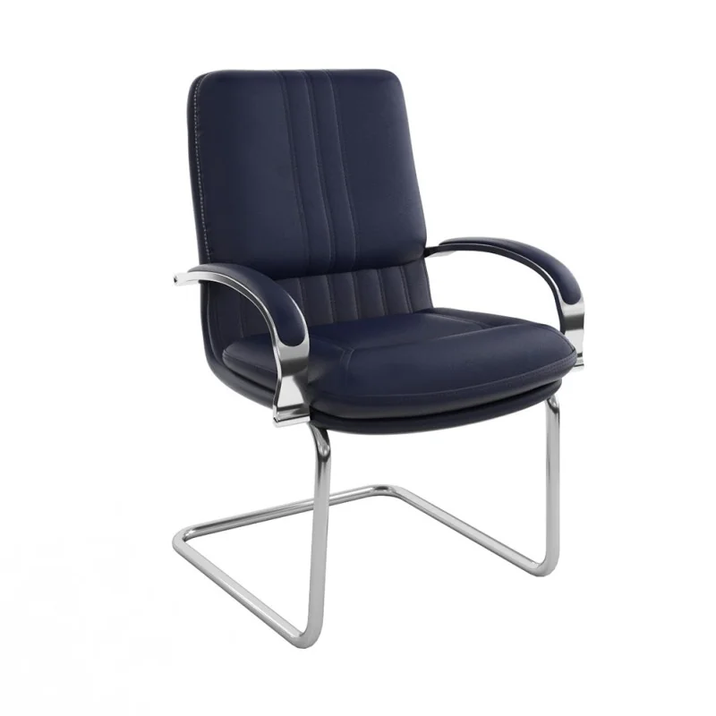 Assise et dossier rembourrés en mousse souple avec couche de dacron. Accoudoirs fixe en métal chromé avec une partie rembourré, tapissé. Revêtement en simili cuir. Structure métallique (luge) chromé avec patins danti-dérapage.