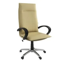 Assise et dossier rembourrés en mousse souple avec couche de dacron. Revêtement en simili cuir. Accoudoirs fixe en Polypropylène couleur noir. Mécanisme tournant, roulant, réglable en hauteur et en inclinaison. Structure étoilée à 05 branches en métal chromé avec 05 roulettes tournantes roulantes à double galets.