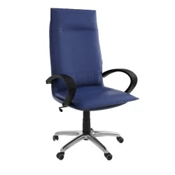 Assise et dossier rembourrés en mousse souple avec couche de dacron. Revêtement en simili cuir. Accoudoirs fixe en Polypropylène couleur noir. Mécanisme tournant, roulant, réglable en hauteur et en inclinaison. Structure étoilée à 05 branches en métal chromé avec 05 roulettes tournantes roulantes à double galets.