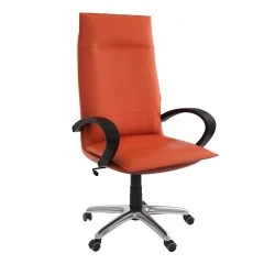 Assise et dossier rembourrés en mousse souple avec couche de dacron. Revêtement en simili cuir. Accoudoirs fixe en Polypropylène couleur noir. Mécanisme tournant, roulant, réglable en hauteur et en inclinaison. Structure étoilée à 05 branches en métal chromé avec 05 roulettes tournantes roulantes à double galets.