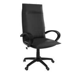 Assise et dossier rembourrés en mousse souple avec couche de dacron. Revêtement en simili cuir. Accoudoirs fixe en Polypropylène couleur noir. Mécanisme tournant, roulant, réglable en hauteur et en inclinaison. Structure étoilée à 05 branches en Polypropylène couleur noir avec 05 roulettes tournantes roulantes à double galets même matière.