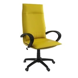 Assise et dossier rembourrés en mousse souple avec couche de dacron. Revêtement en simili cuir. Accoudoirs fixe en Polypropylène couleur noir. Mécanisme tournant, roulant, réglable en hauteur et en inclinaison. Structure étoilée à 05 branches en Polypropylène couleur noir avec 05 roulettes tournantes roulantes à double galets même matière.
