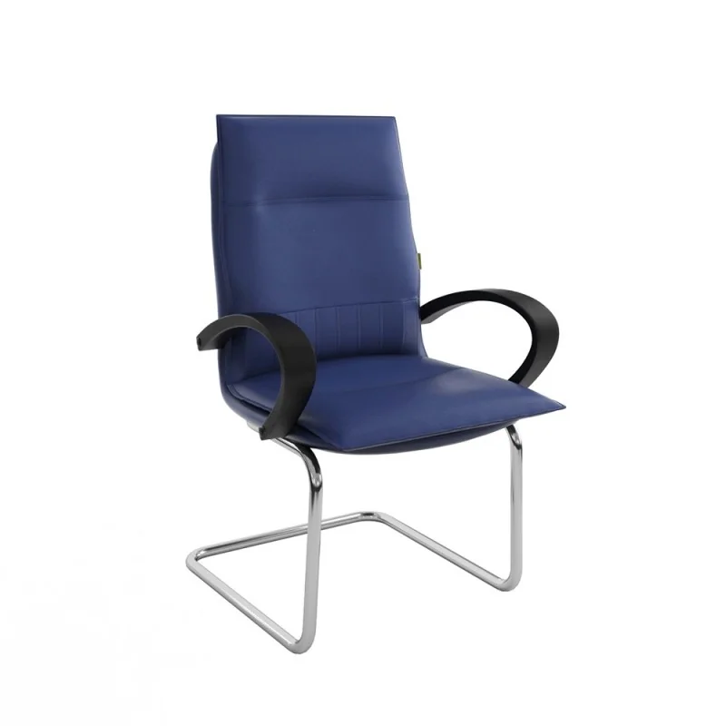 Assise et dossier rembourrés en mousse souple avec couche de dacron. Revêtement en simili cuir. Accoudoirs fixe en Polypropylène couleur noir. Structure métallique (luge) chromé avec patins danti-dérapage.