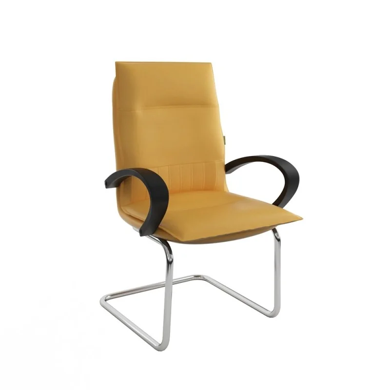 Assise et dossier rembourrés en mousse souple avec couche de dacron. Revêtement en simili cuir. Accoudoirs fixe en Polypropylène couleur noir. Structure métallique (luge) chromé avec patins danti-dérapage.