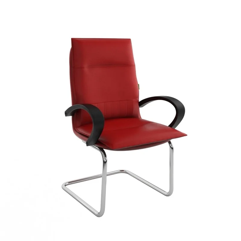 Assise et dossier rembourrés en mousse souple avec couche de dacron. Revêtement en simili cuir. Accoudoirs fixe en Polypropylène couleur noir. Structure métallique (luge) chromé avec patins danti-dérapage.