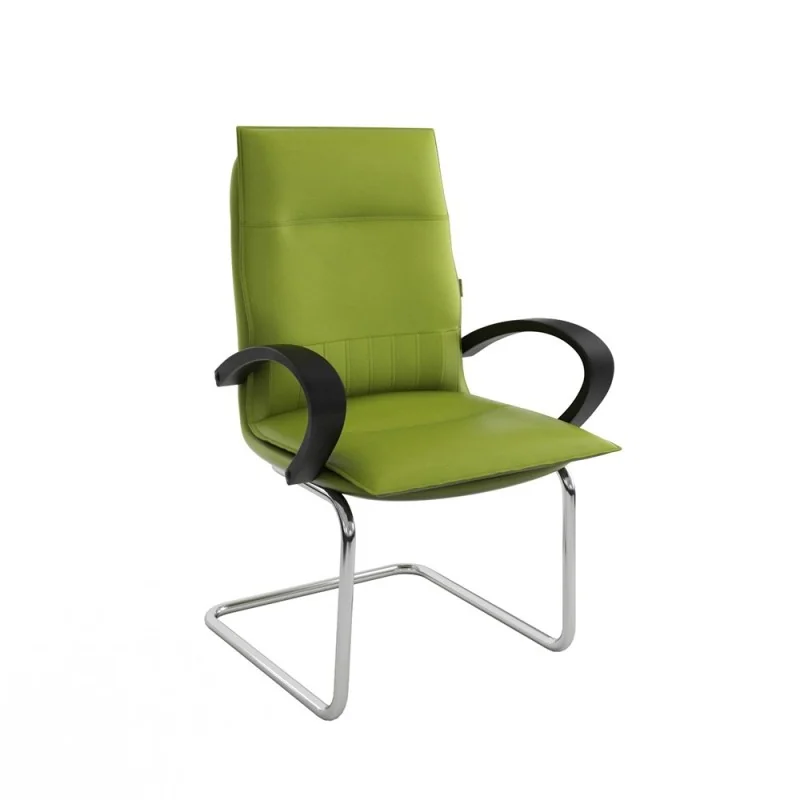 Assise et dossier rembourrés en mousse souple avec couche de dacron. Revêtement en simili cuir. Accoudoirs fixe en Polypropylène couleur noir. Structure métallique (luge) chromé avec patins danti-dérapage.