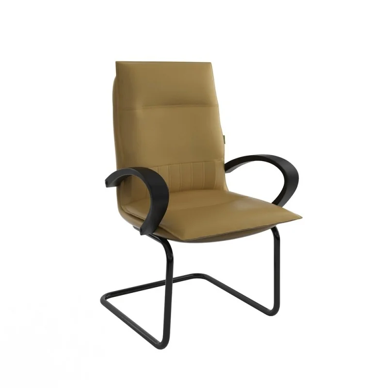 Assise et dossier rembourrés en mousse souple avec couche de dacron. Revêtement en simili cuir. Accoudoirs fixe en Polypropylène couleur noir. Structure métallique (luge) peinture Epoxy avec patins danti-dérapage.