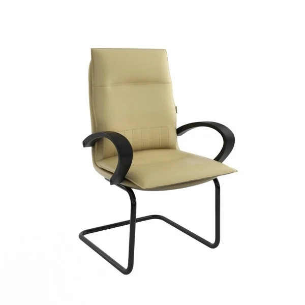 Assise et dossier rembourrés en mousse souple avec couche de dacron. Revêtement en simili cuir. Accoudoirs fixe en Polypropylène couleur noir. Structure métallique (luge) peinture Epoxy avec patins danti-dérapage.