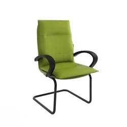 Assise et dossier rembourrés en mousse souple avec couche de dacron. Revêtement en simili cuir. Accoudoirs fixe en Polypropylène couleur noir. Structure métallique (luge) peinture Epoxy avec patins danti-dérapage.