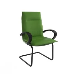 Assise et dossier rembourrés en mousse souple avec couche de dacron. Revêtement en simili cuir. Accoudoirs fixe en Polypropylène couleur noir. Structure métallique (luge) peinture Epoxy avec patins danti-dérapage.