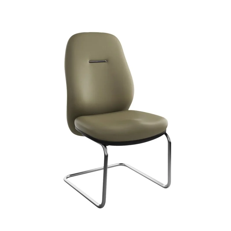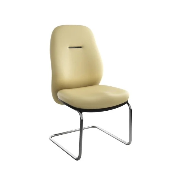 Assise et dossier rembourrés en mousse injectée. Revêtement en simili cuir. Structure métallique (luge) chromé avec patins danti-dérapage.