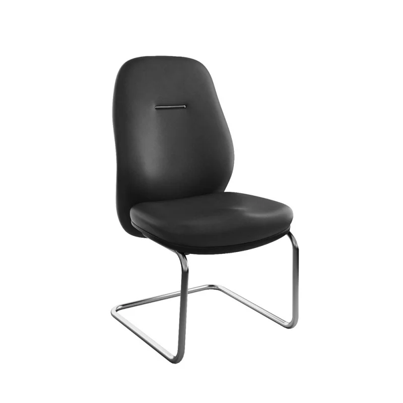 Assise et dossier rembourrés en mousse injectée. Revêtement en simili cuir. Structure métallique (luge) chromé avec patins danti-dérapage.