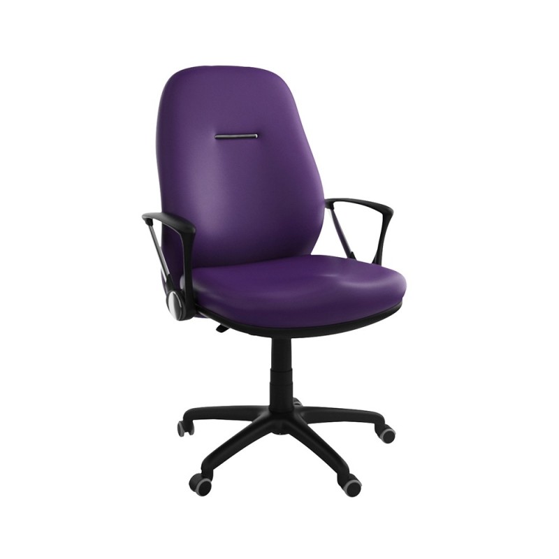 Assise et dossier en mousse injectée. Revêtement en simili cuir. Accoudoirs en acier chromé et Polypropylène noir. Mécanisme Basculant, tournant, roulant, réglable en hauteur et en inclinaison. Structure étoilée à 05 branches en Polypropylène couleur noir avec 05 roulettes tournantes roulantes à double galets.