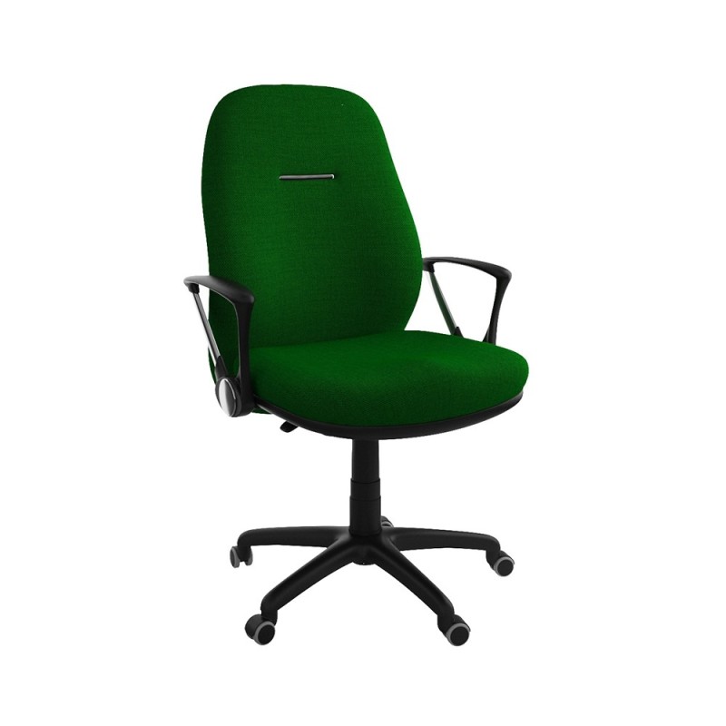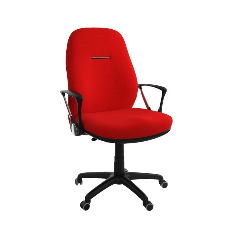 Assise et dossier en mousse injectée. Revêtement en simili cuir. Accoudoirs en acier chromé et Polypropylène noir. Mécanisme Basculant, tournant, roulant, réglable en hauteur et en inclinaison. Structure étoilée à 05 branches en Polypropylène couleur noir avec 05 roulettes tournantes roulantes à double galets.
