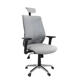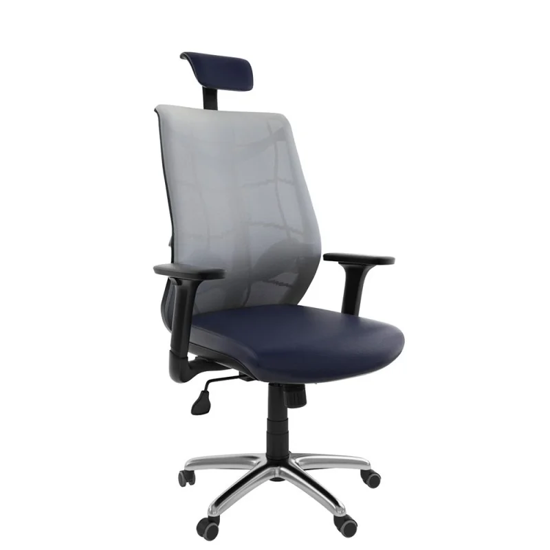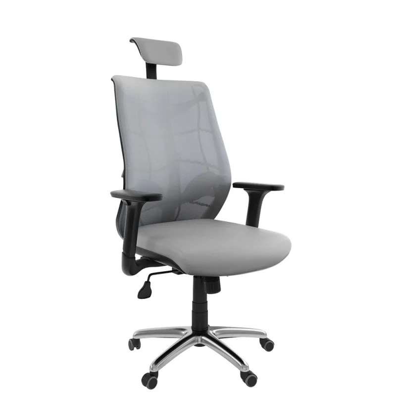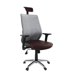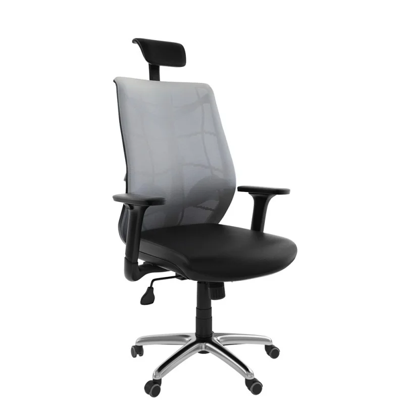 Assise rembourré en mousse souple avec couche de dacron. Dossier en Filet monté sur structure en polypropylène noir avec réglage lombaire en hauteur. Repose tête rembourrés en mousse souple réglable en hauteur. Revêtement en simili cuir. Accoudoirs en polypropylène ajustable et réglable 3D. Mécanisme Synchronique tournant, roulant, réglable en hauteur et en inclinaison. Structure étoilée à 05 branches en métal chromé avec 05 roulettes tournantes roulantes à double galets.