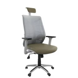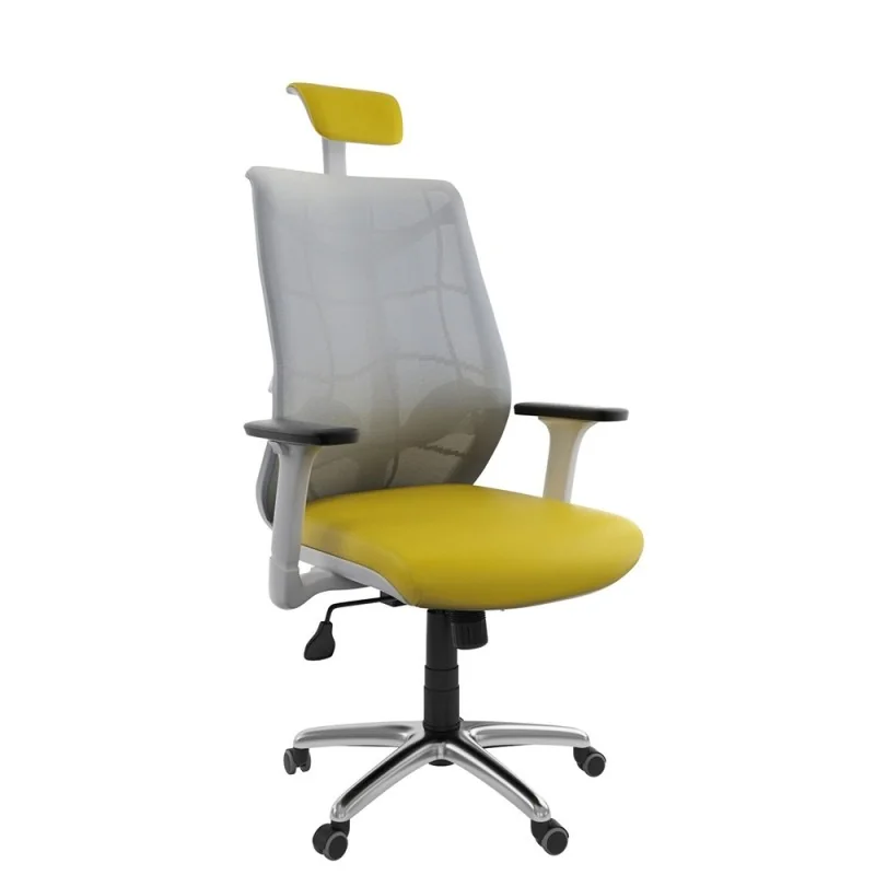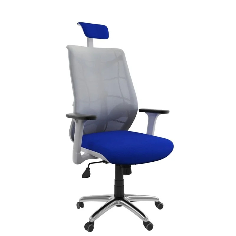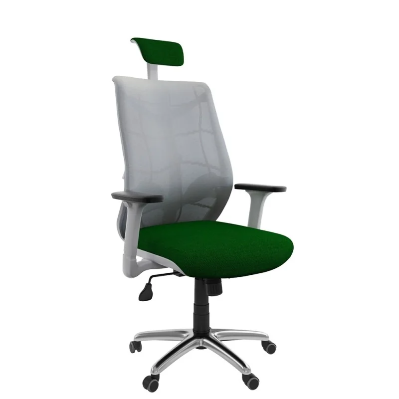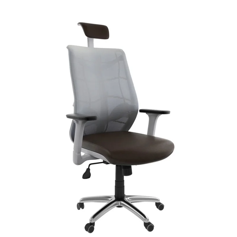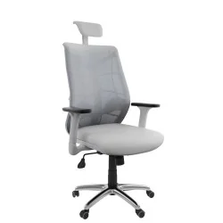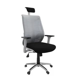 Assise rembourré en mousse souple avec couche de dacron. Dossier en Filet monté sur structure en polypropylène noir avec réglage lombaire en hauteur. Repose tête rembourrés en mousse souple réglable en hauteur. Revêtement en simili cuir. Accoudoirs en polypropylène ajustable et réglable 3D. Mécanisme Synchronique tournant, roulant, réglable en hauteur et en inclinaison. Structure étoilée à 05 branches en métal chromé avec 05 roulettes tournantes roulantes à double galets.