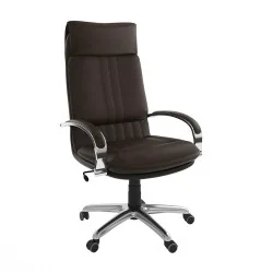 Assise et dossier rembourrés en mousse souple avec couche de dacron. Revêtement en simili cuir ou tissu. Accoudoirs fixe en métal chromé avec une partie rembourré, tapissé. Mécanisme tournant, roulant, réglable en hauteur et en inclinaison. Structure étoilée à 05 branches en métal couleur chromé avec 05 roulettes tournantes roulantes à double galets même matière.