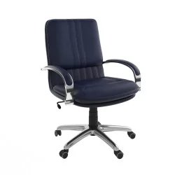 Assise et dossier rembourrés en mousse souple avec couche de dacron. Revêtement en simili cuir ou tissu. Accoudoirs fixe en métal chromé avec une partie rembourré, tapissé. Mécanisme tournant, roulant, réglable en hauteur et en inclinaison. Structure étoilée à 05 branches en métal couleur chromé avec 05 roulettes tournantes roulantes à double galets même matière.