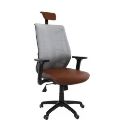 Assise rembourré en mousse souple avec couche de dacron. Dossier en Filet monté sur structure en polypropylène noir avec réglage lombaire en hauteur. Repose tête rembourrés en mousse souple réglable en hauteur. Revêtement en simili cuir. Accoudoirs en polypropylène ajustable et réglable 3D. Mécanisme Synchronique tournant, roulant, réglable en hauteur et en inclinaison. Structure étoilée à 05 branches en métal chromé avec 05 roulettes tournantes roulantes à double galets.
