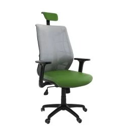 Assise rembourré en mousse souple avec couche de dacron. Dossier en Filet monté sur structure en polypropylène noir avec réglage lombaire en hauteur. Repose tête rembourrés en mousse souple réglable en hauteur. Revêtement en simili cuir. Accoudoirs en polypropylène ajustable et réglable 3D. Mécanisme Synchronique tournant, roulant, réglable en hauteur et en inclinaison. Structure étoilée à 05 branches en métal chromé avec 05 roulettes tournantes roulantes à double galets.