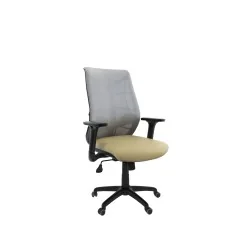 Assise rembourré en mousse souple avec couche de dacron. Dossier en Filet monté sur structure en polypropylène noir avec réglage lombaire en hauteur. Revêtement en simili cuir. Accoudoirs en polypropylène ajustable et réglable 3D. Mécanisme Synchronique tournant, roulant, réglable en hauteur et en inclinaison. Structure étoilée à 05 branches en métal chromé avec 05 roulettes tournantes roulantes à double galets.