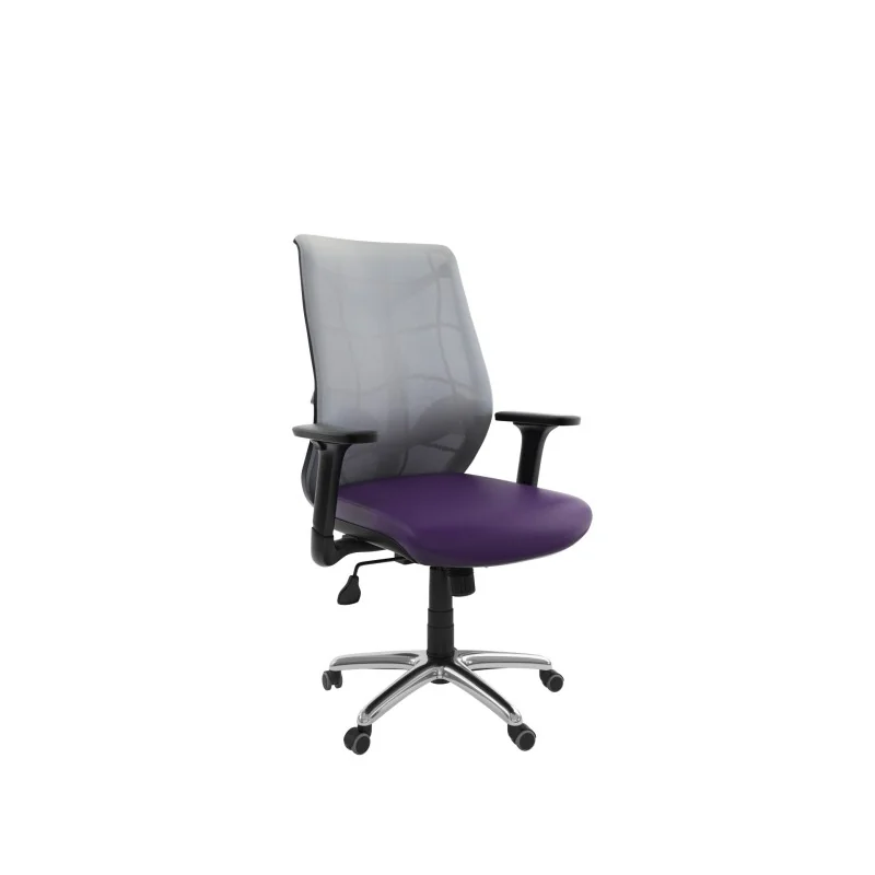 Assise rembourré en mousse souple avec couche de dacron. Dossier en Filet monté sur structure en polypropylène noir avec réglage lombaire en hauteur. Revêtement en simili cuir. Accoudoirs en polypropylène ajustable et réglable 3D. Mécanisme Synchronique tournant, roulant, réglable en hauteur et en inclinaison. Structure étoilée à 05 branches en métal chromé avec 05 roulettes tournantes roulantes à double galets.