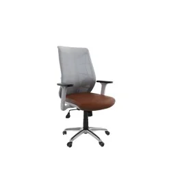 Assise rembourré en mousse souple avec couche de dacron. Dossier en Filet monté sur structure en polypropylène noir avec réglage lombaire en hauteur. Revêtement en simili cuir. Accoudoirs en polypropylène ajustable et réglable 3D. Mécanisme Synchronique tournant, roulant, réglable en hauteur et en inclinaison. Structure étoilée à 05 branches en métal chromé avec 05 roulettes tournantes roulantes à double galets.