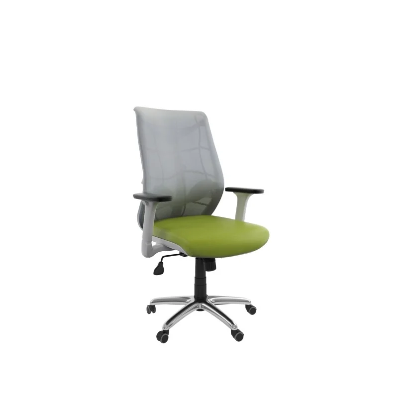 Assise rembourré en mousse souple avec couche de dacron. Dossier en Filet monté sur structure en polypropylène noir avec réglage lombaire en hauteur. Revêtement en simili cuir. Accoudoirs en polypropylène ajustable et réglable 3D. Mécanisme Synchronique tournant, roulant, réglable en hauteur et en inclinaison. Structure étoilée à 05 branches en métal chromé avec 05 roulettes tournantes roulantes à double galets.