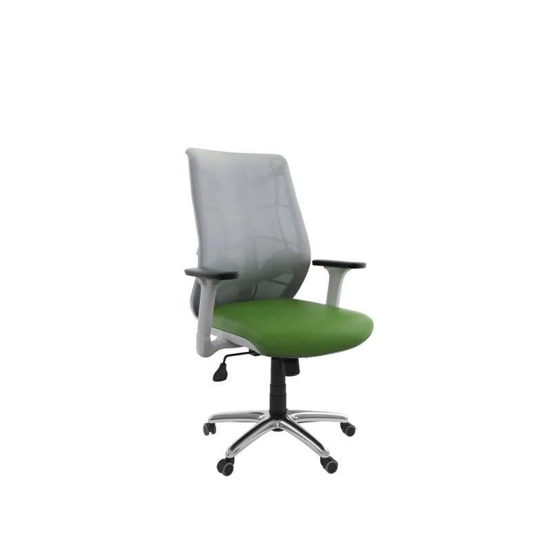 Assise rembourré en mousse souple avec couche de dacron. Dossier en Filet monté sur structure en polypropylène noir avec réglage lombaire en hauteur. Revêtement en simili cuir. Accoudoirs en polypropylène ajustable et réglable 3D. Mécanisme Synchronique tournant, roulant, réglable en hauteur et en inclinaison. Structure étoilée à 05 branches en métal chromé avec 05 roulettes tournantes roulantes à double galets.