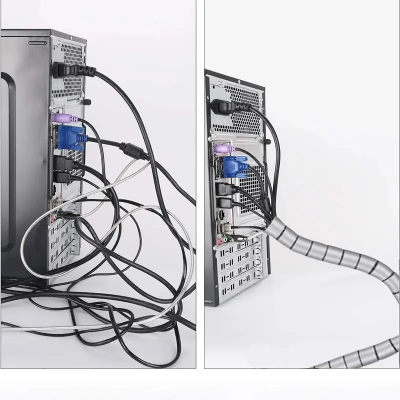 Le Protecteur et Organisateur de Fil de Câbles Flexible Gris est un accessoire qui regroupe et protège les câbles contre les dommages physiques, l'usure et les nœuds. Flexible et facile à installer, Il permet de maintenir les câbles bien rangés, ce qui facilite leur gestion, que ce soit dans un bureau, un salon ou un espace de travail, tout en offrant une certaine protection contre la chaleur et l'humidité. Sa couleur grise s’intègre discrètement dans différents environnements.