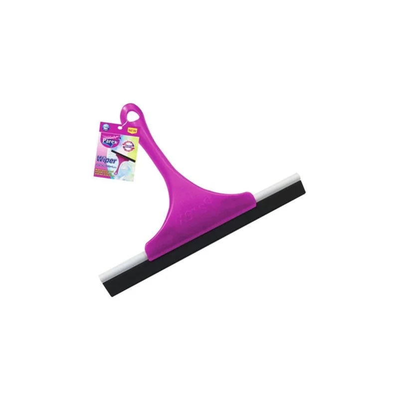 Raclette à vitres Parex en plastique, mesurant 24 cm de longueur. Son design ergonomique assure une manipulation aisée. Idéale pour nettoyer efficacement surfaces, vitres et miroirs, elle est équipée d'un essuie en caoutchouc anti-rayures. Disponible en couleur violet.