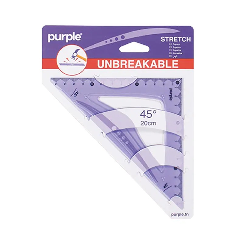 Equerre Stretch de 20 cm, avec une prise de 45° et conçue pour être incassable, est un choix parfait pour les étudiants et les enfants. Fabriquée dans un matériau plastique résistant, elle peut résister aux mauvais traitements tels que les flexions, torsions et chocs souvent subis dans les cartables.