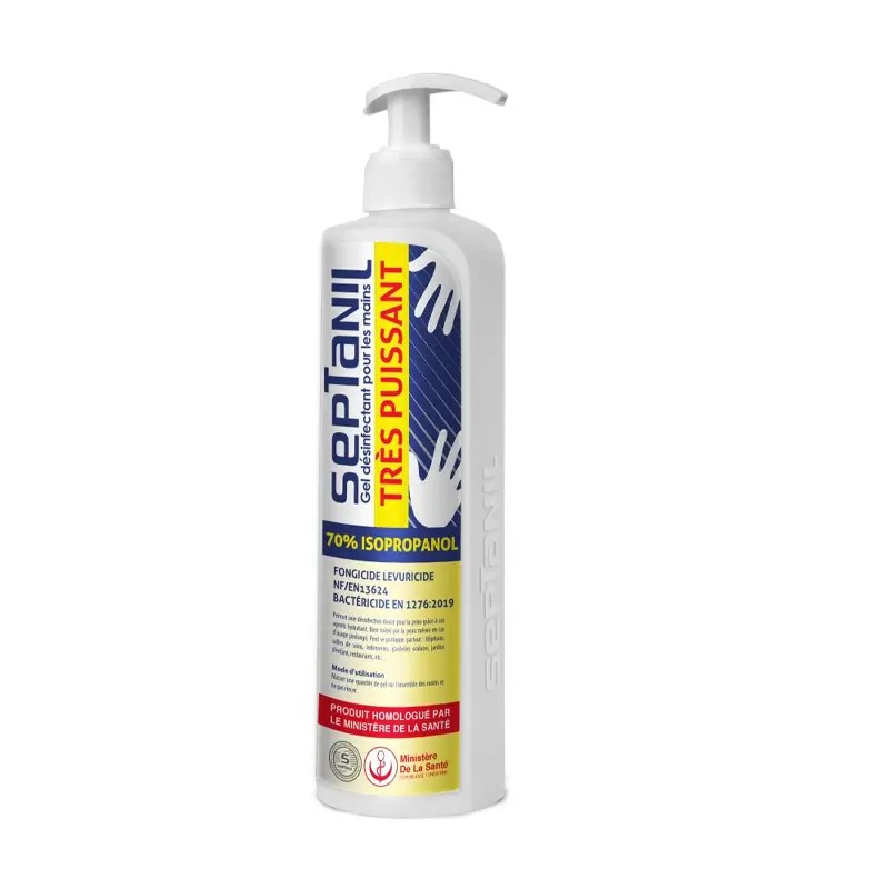 Adoptez ce gel hydro-alcoolique désinfectant septanil, et offrez à vos mains un produit antibactérien parfumé.