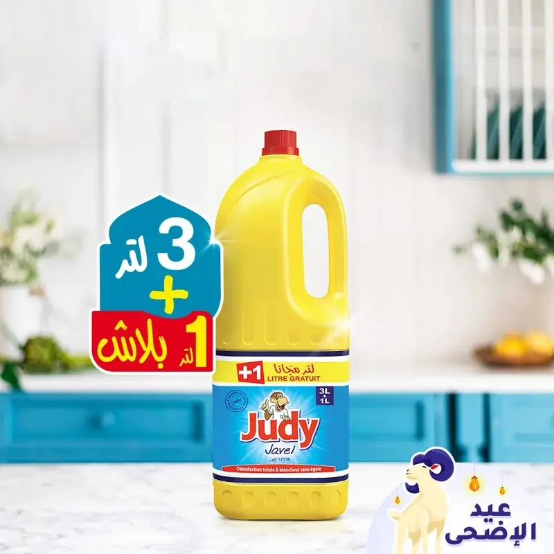 Javel Judy désinfecte totalement la maison et le bureau, blanchit le linge et élimine les mauvaises odeurs. Avec le javel Judy 3L + 1L gratuit , votre maison ou lieu de travail est parfaitement propre et sain. Grâce à sa formule à action renforcée, l’eau de javel concentré Judy nettoie, désodorise, blanchit et désinfecte les sols et carrelages de vos cuisines, salles de bains, toilettes, poubelles, etc.
