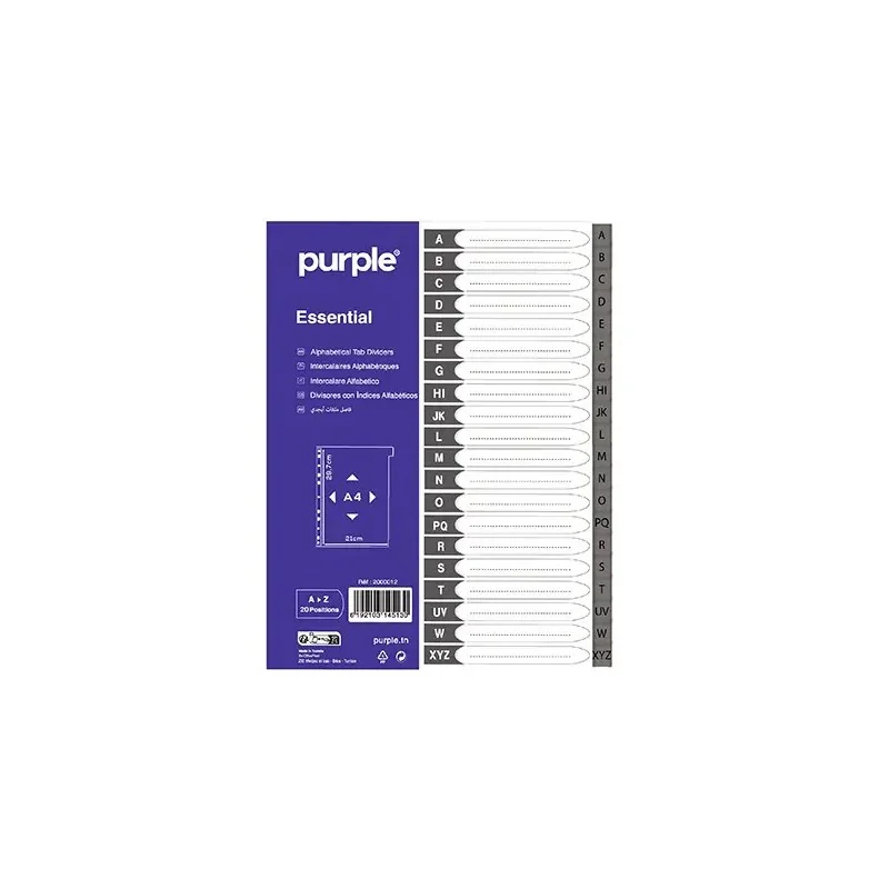 Jeux d’intercalaires alphabétiques, composé de 20 positions, fabriquées avec soin en polypropylène souple dans une élégante teinte grise unie. Ces intercalaires ont été spécialement conçus pour faciliter l'organisation de vos documents grâce à un système de classement alphabétique.