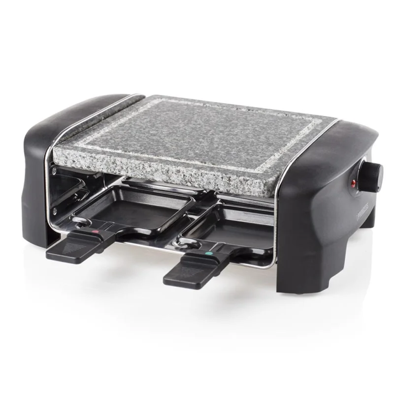 Profitez d'une soirée agréable de cuisine avec votre chéri(e) ou en famille avec l’appareil à pierre à cuire et raclette Princess 162810. Si vous avez une soirée de festivités prévue pendant les vacances ou tout simplement pour vous faire plaisir au cours de la semaine, voici l'appareil parfait. Saisissez la viande sur la partie supérieure du gril en pierre et faites cuire des omelettes, des crêpes délicieuses ou faites fondre du fromage à raclette dans les coupelles. Garantie :2 ans