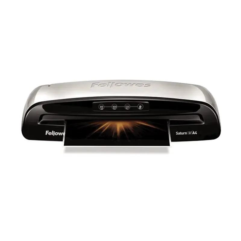 La plastifieuse FELLOWES Saturn 3i A4 est conçue pour une utilisation régulière à domicile ou dans un petit bureau. Grâce à sa technologie InstaHeat, elle est prête à l’emploi en seulement 60 secondes, vous permettant de gagner un temps précieux au quotidien.