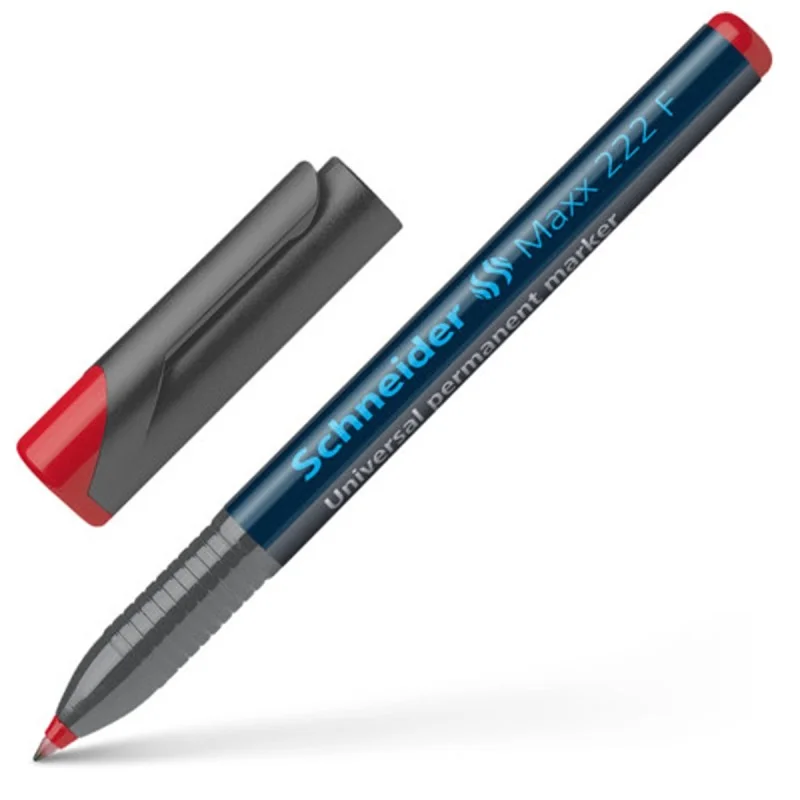 Marqueur universel permanent, épaisseur de trait fine (F) environ 0.7 mm. Couleur d'encre rouge. Pour films transparents, plastique, verre, métal et autres matériaux. L'encre est de couleur intense, sèche rapidement, est résistante à l'eau et à la lumière. Le modèle cap-off peut rester ouvert pendant 2-3 jours sans sécher. Encre à faible odeur, sans toluène et xylène. Modèle de poche fine equipé d'un capuchon avec clip pratique.