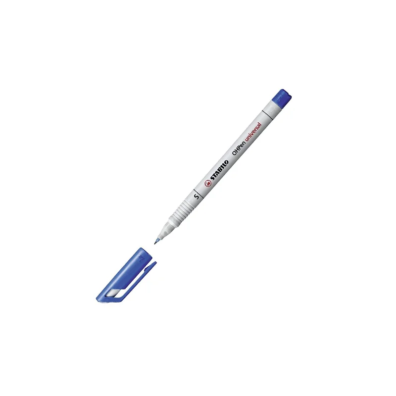 STABILO propose le marqueur UNIVERSEL PERMANENT OHP 0.4MM, léger et indélébile, idéal pour marquer sur diverses surfaces. Résistant à l'eau, il est doté d'un capuchon ventilé avec clip et d'un grip antidérapant. Disponible en bleu, vert, noir et rouge
