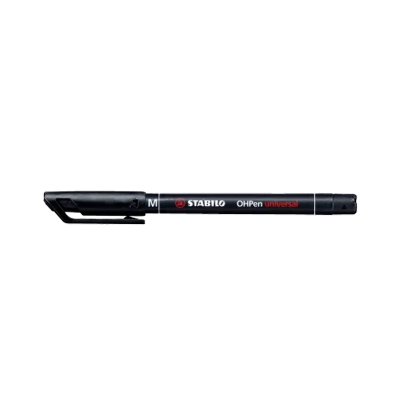 Le STABILO OHPen universel est disponible en stylo unique,une largeur de trait moyenne de 1,0 mm. Il est conçu pour écrire sur presque toutes les surfaces lisses. Doté d'une zone de préhension antidérapante et d'un clip pratique pour les déplacements, ce stylo offre jusqu'à 72 heures de protection contre le dessèchement.