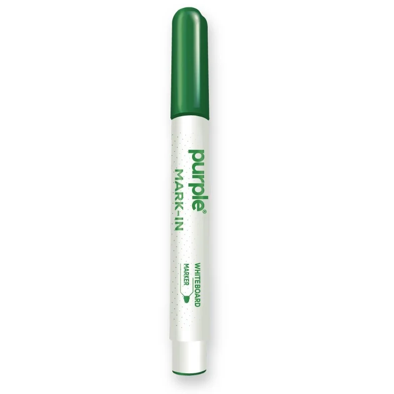 Les Marqueurs Tableau MARK-IN de Purple, disponibles en noir, bleu, vert et rouge,  Chaque marqueur a une pointe ogive en plastique, idéale pour l'écriture.