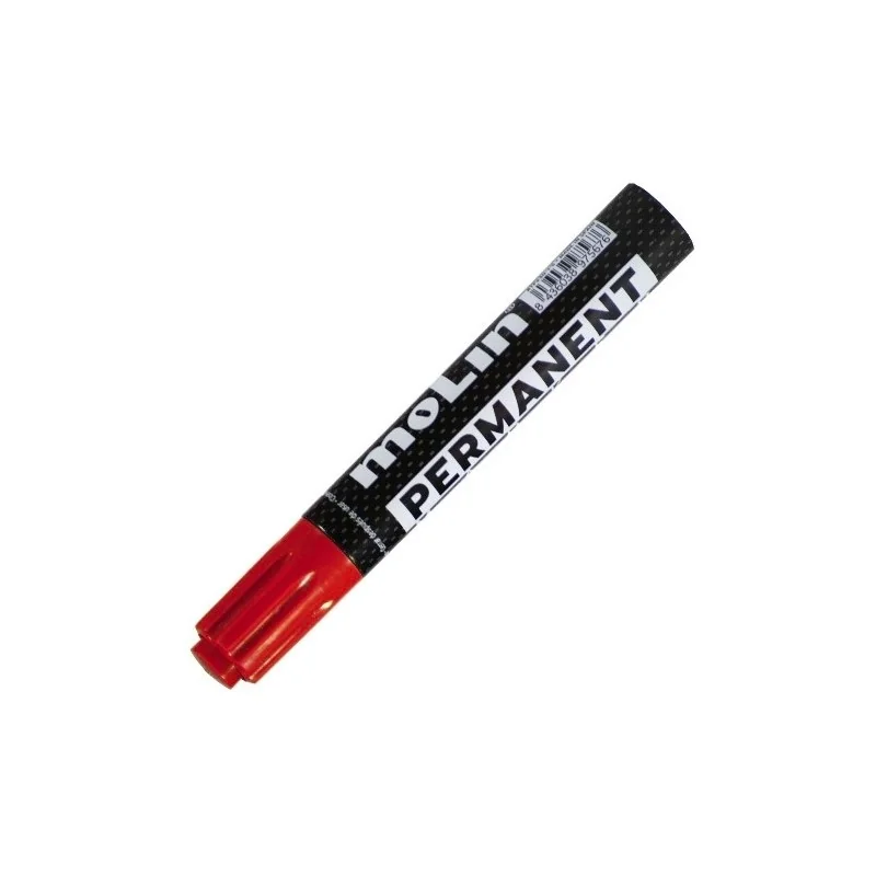 Marqueur de couleur rouge Molin avec pointe ogive, offre un trait fin 1,5 mm. Encre à base d'alcool sans solvants avec faible odeur.